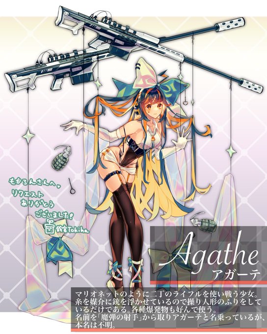 おまけ: 名前とちょっとしたキャラ設定あったら嬉しいな〜とのことだったのでちょろっと描いた分です。 アガーテちゃんと名乗らせました。 こういう何かからの名前引用が大好きなんだ。 SkebのURLはこちら〜 skeb.jp/@tokiha_suzumi…