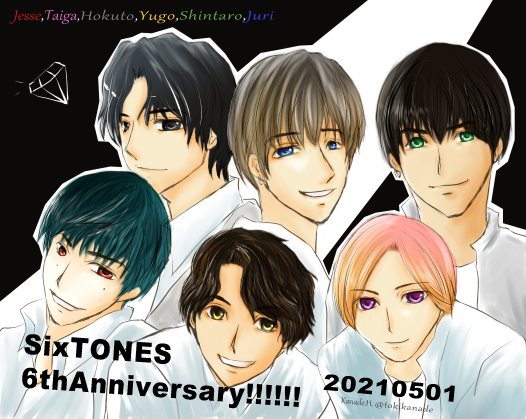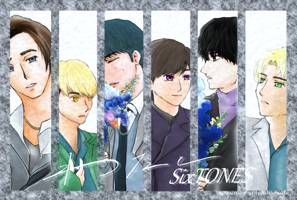 #SixTONES_声 発売おめでとうございます🥳 届けられた"六線のスコア"を味わいます✨ 素敵な"声"とオンガクを届けてくれて感謝。 歌声と歓声の祈り、叶いますように。 (過去絵再掲すみません🙏🙏🙏)