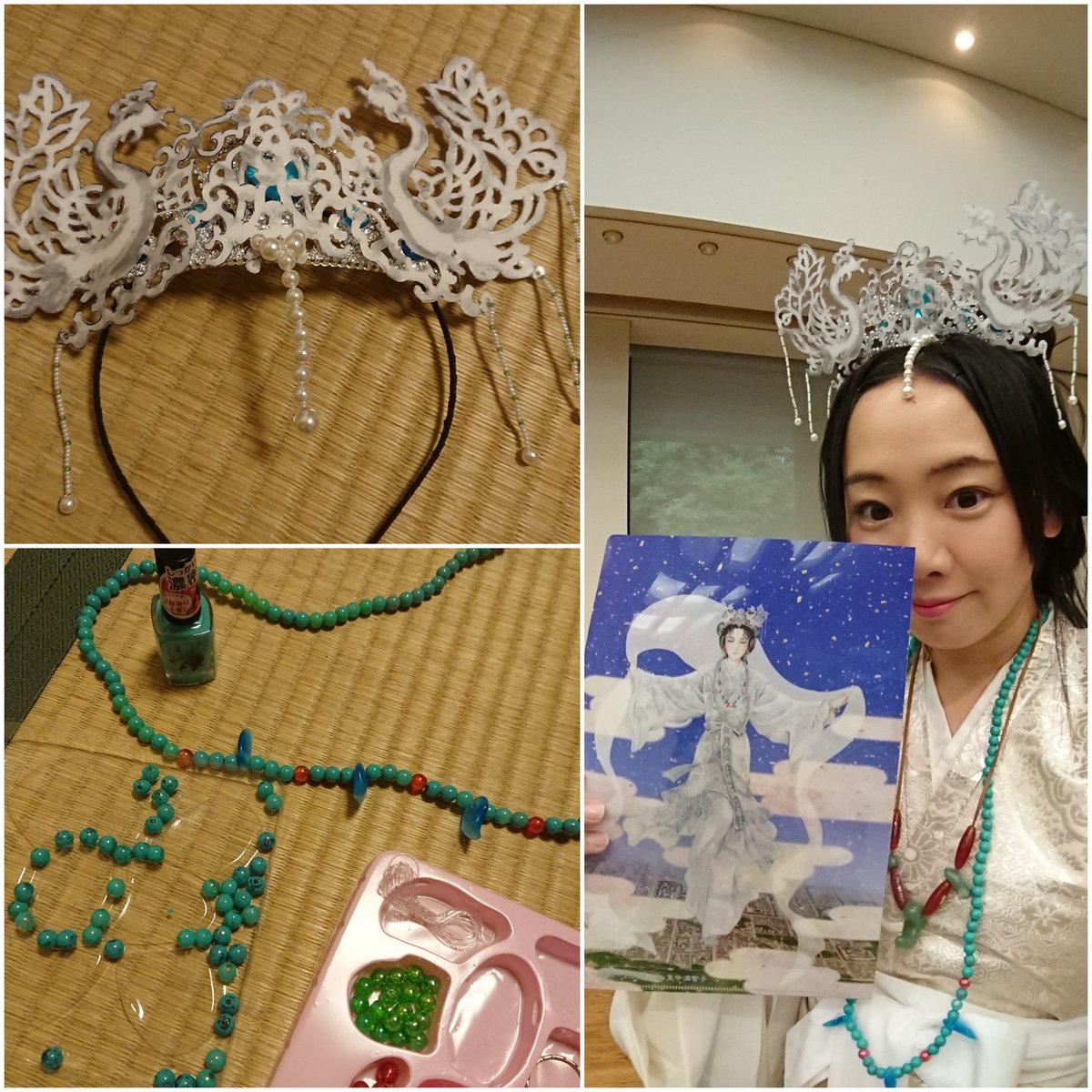#百均のグッズ間違った使い方選手権 このタグ、めっちゃ面白かったから便乗~♪ クリアファイル、子供用ビーズ、マニキュア、カチューシャ、針金、眉毛用ハサミ、ほぼ百均で揃えました。里中満智子先生の『天上の虹』の持統天皇コスプレです。#天上の虹 #天上衣装 #天平人 tokikogin2.blog.jp/archives/10726…