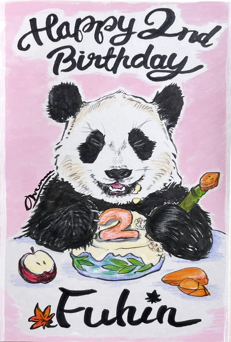この間描いた楓ちゃんに、背景に色つけてみてる🎨🎨 ちょっと黄色強すぎるかな?パキっとしてて可愛いけど、もう少しパステルにするのもありだな💕🐼 #楓浜 #アドベンチャーワールド #パンダ #パンダと楽しむ14週間 #art #panda #イラスト