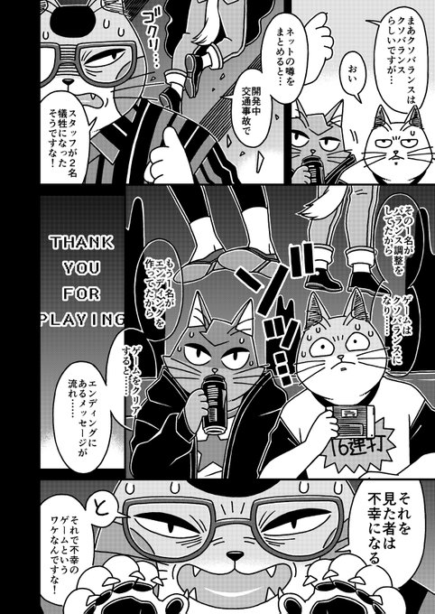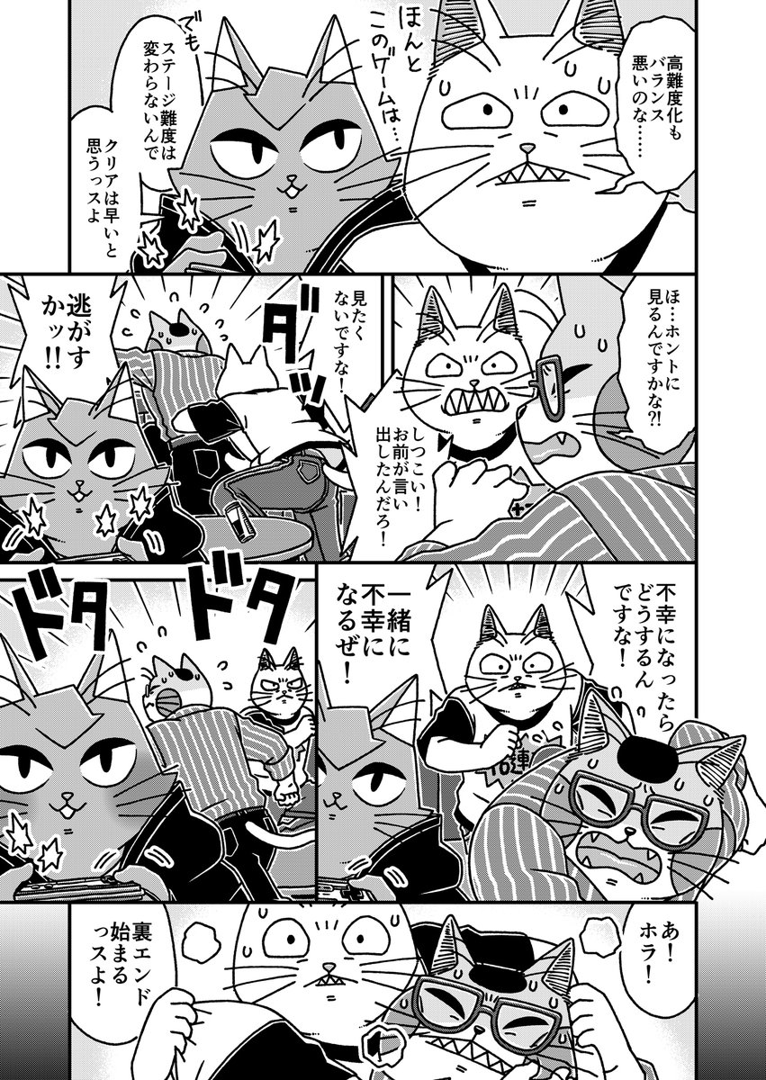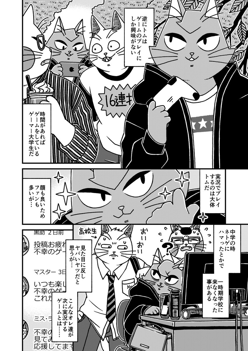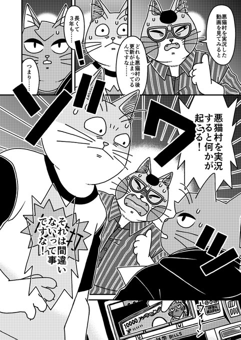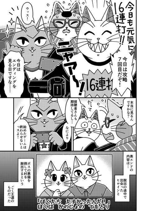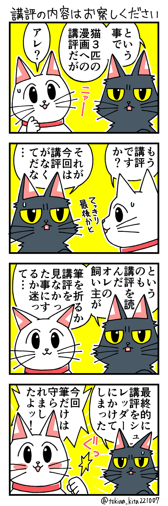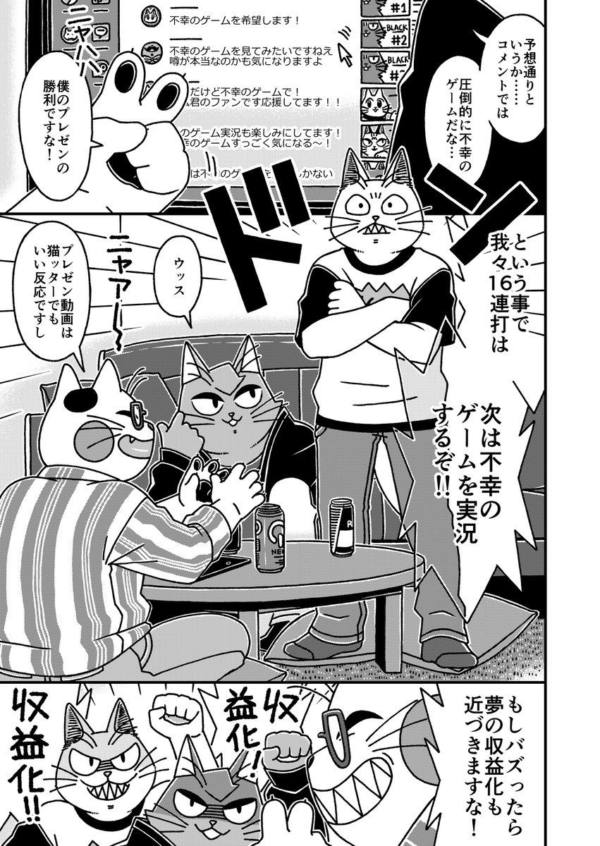 猫の黒いの白いのEX27 「猫3匹不幸のゲームを実況するぞ!」に頂いた講評についてです 今回は筆を守る事にしました 何回でも言いますが自分は好きな作品です #漫画が読めるハッシュタグ #猫漫画 #4コマ漫画