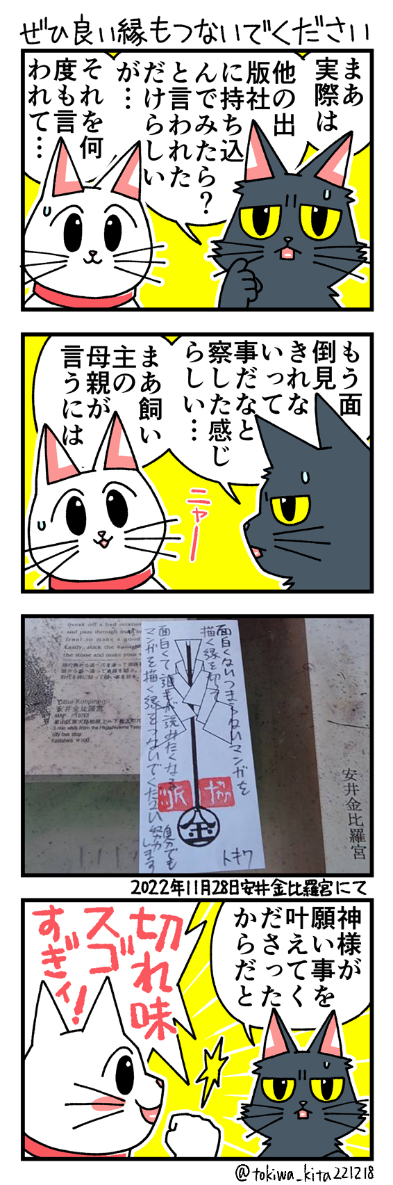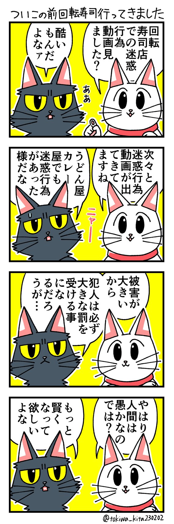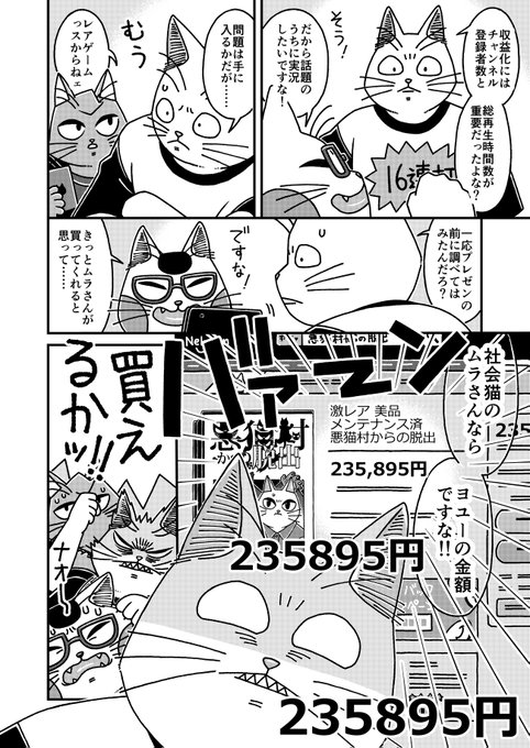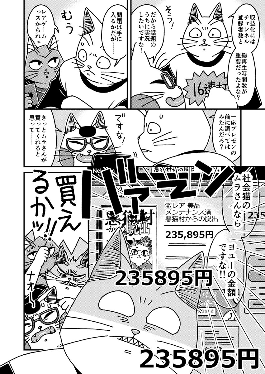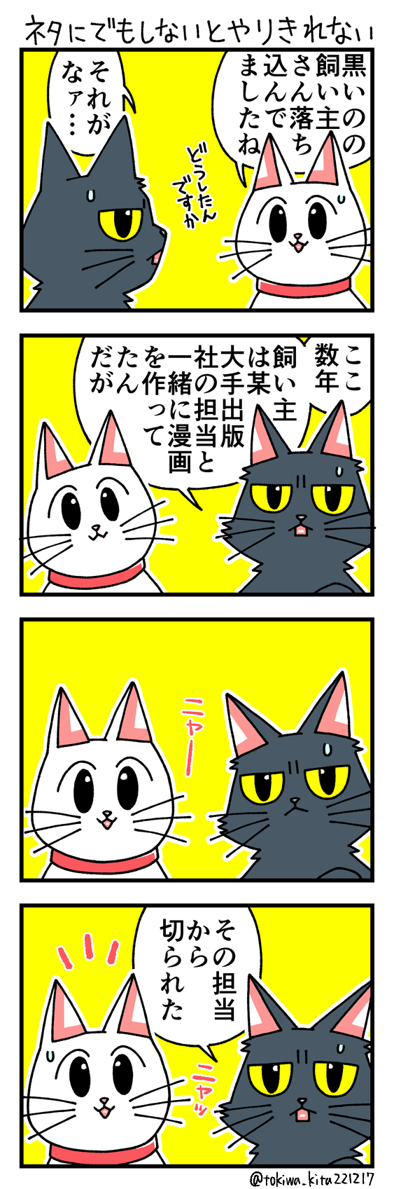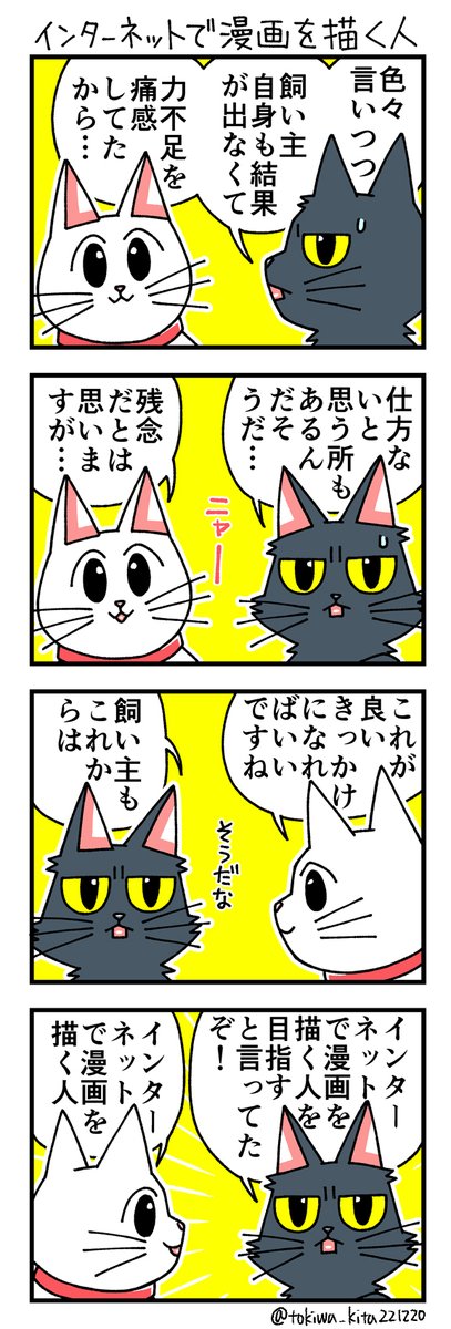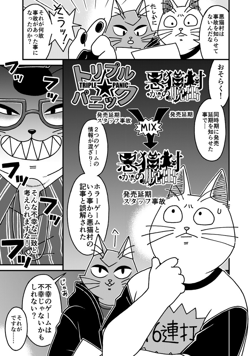 猫の黒いの白いのEX27 「猫3匹不幸のゲームを実況するぞ!」に頂いた講評についてです 今回は筆を守る事にしました 何回でも言いますが自分は好きな作品です #漫画が読めるハッシュタグ #猫漫画 #4コマ漫画