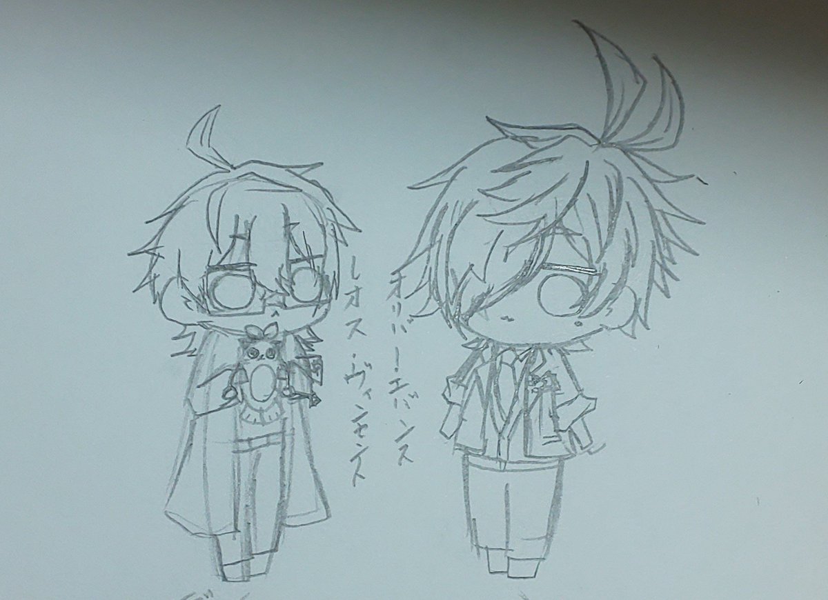 オリバー君!完走おめでとう!! ちなみになんだかんだ2人ともほぼ初描き。 オリバー君とレオス君の身長差描くの難しかった、タレ目上手くいった気がするけどまめねここんな顔するかな?ミニと手癖等身って感じです #絵バンス #まめねことレオス