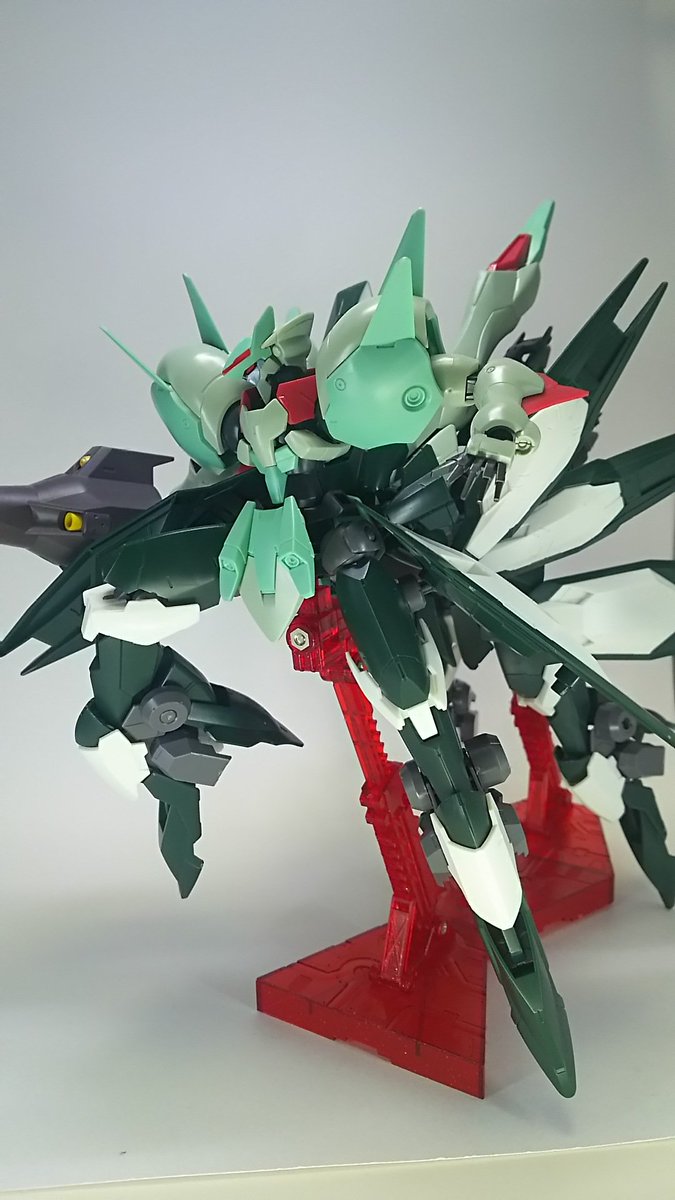 #おき生模型部 #無塗装 陸戦っぽいポルタノヴァです カスタマイズマテリアルのレンズシールが無限に欲しい あとOLブースターをアスクレプオスと余剰パーツでオリジナルカラージェミナス風にしてみました