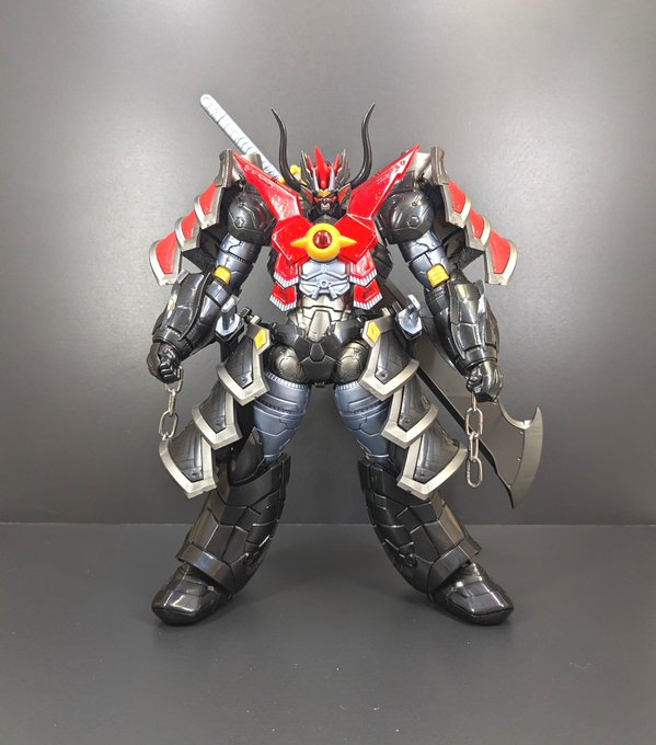 3 20 #おき生模型部 モデロイドのマジンカイザー刃皇(はおう)組みました、個人的にはサザンクロスナイフがあるのがポイント高し 手首の鎖は百均のチェーンに交換いてます 顔と胸以外は普通のカイザーとして組むことも可能、そしてファイナルカイザーブレードがほぼ余剰になる嬉しい誤算!('ロ' ) 22/12/29 22:17