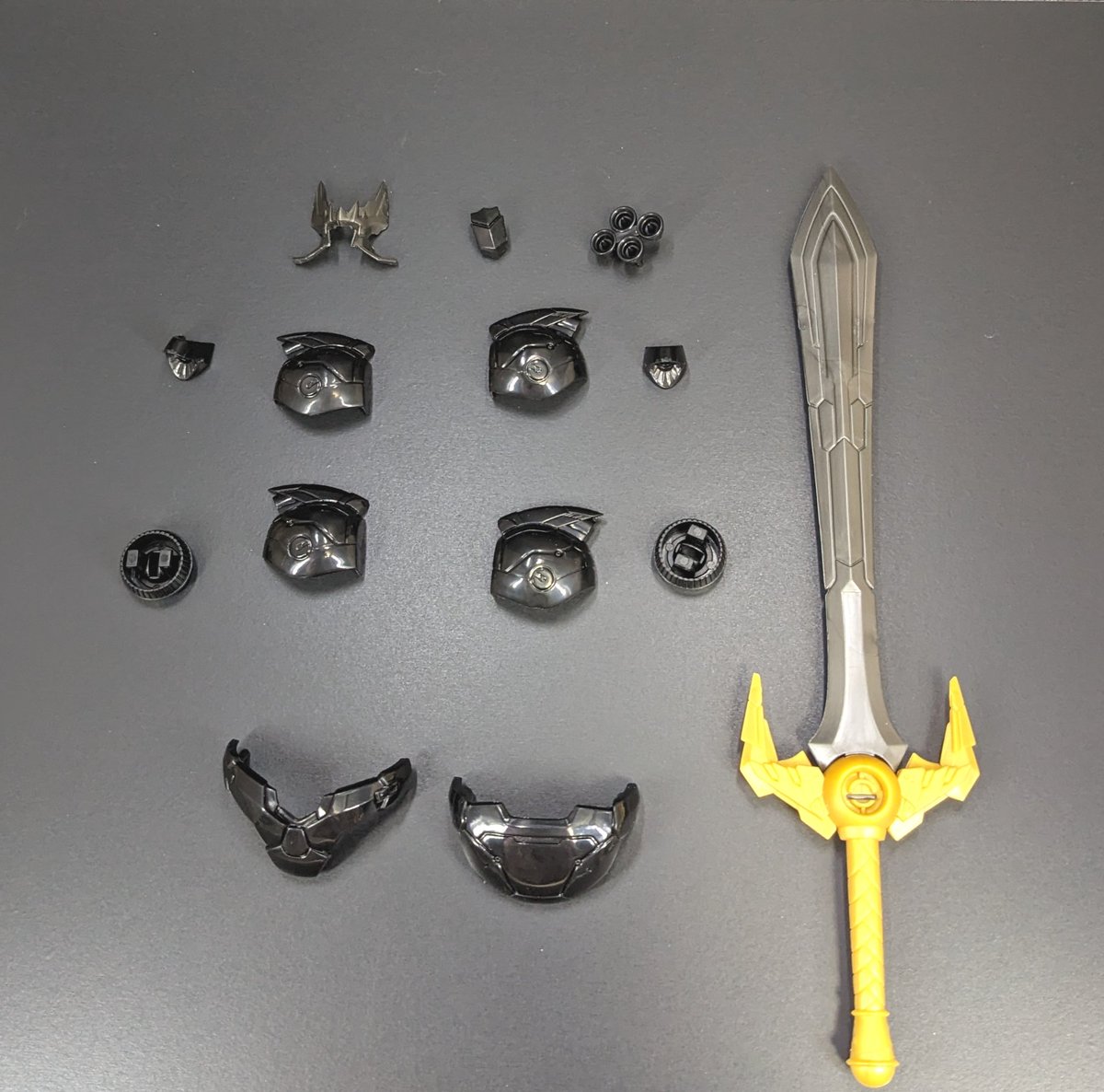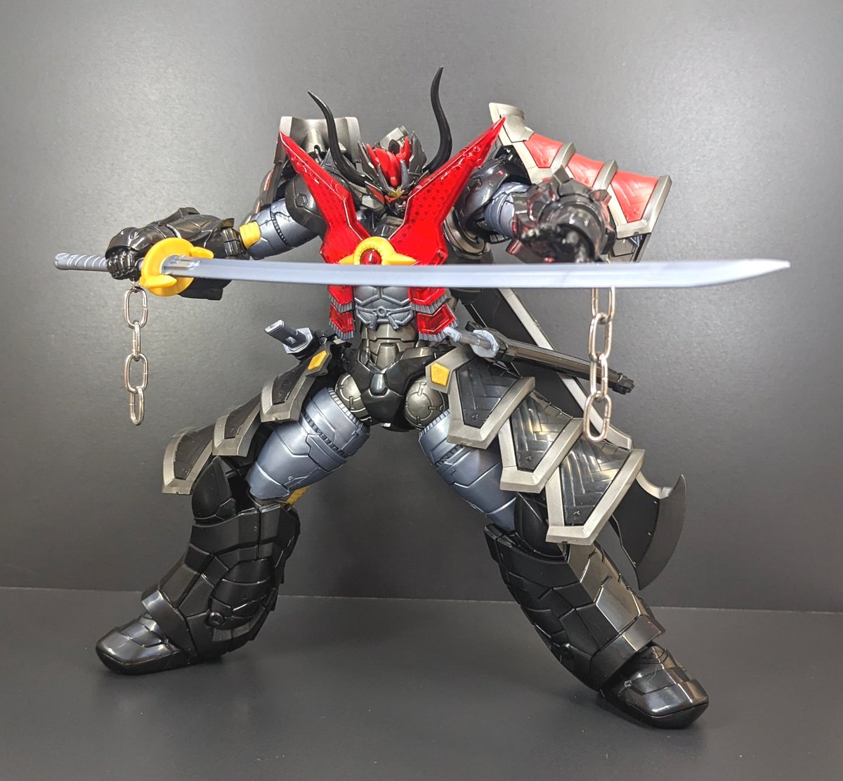 #おき生模型部 モデロイドのマジンカイザー刃皇(はおう)組みました、個人的にはサザンクロスナイフがあるのがポイント高し 手首の鎖は百均のチェーンに交換いてます 顔と胸以外は普通のカイザーとして組むことも可能、そしてファイナルカイザーブレードがほぼ余剰になる嬉しい誤算!('ロ' )