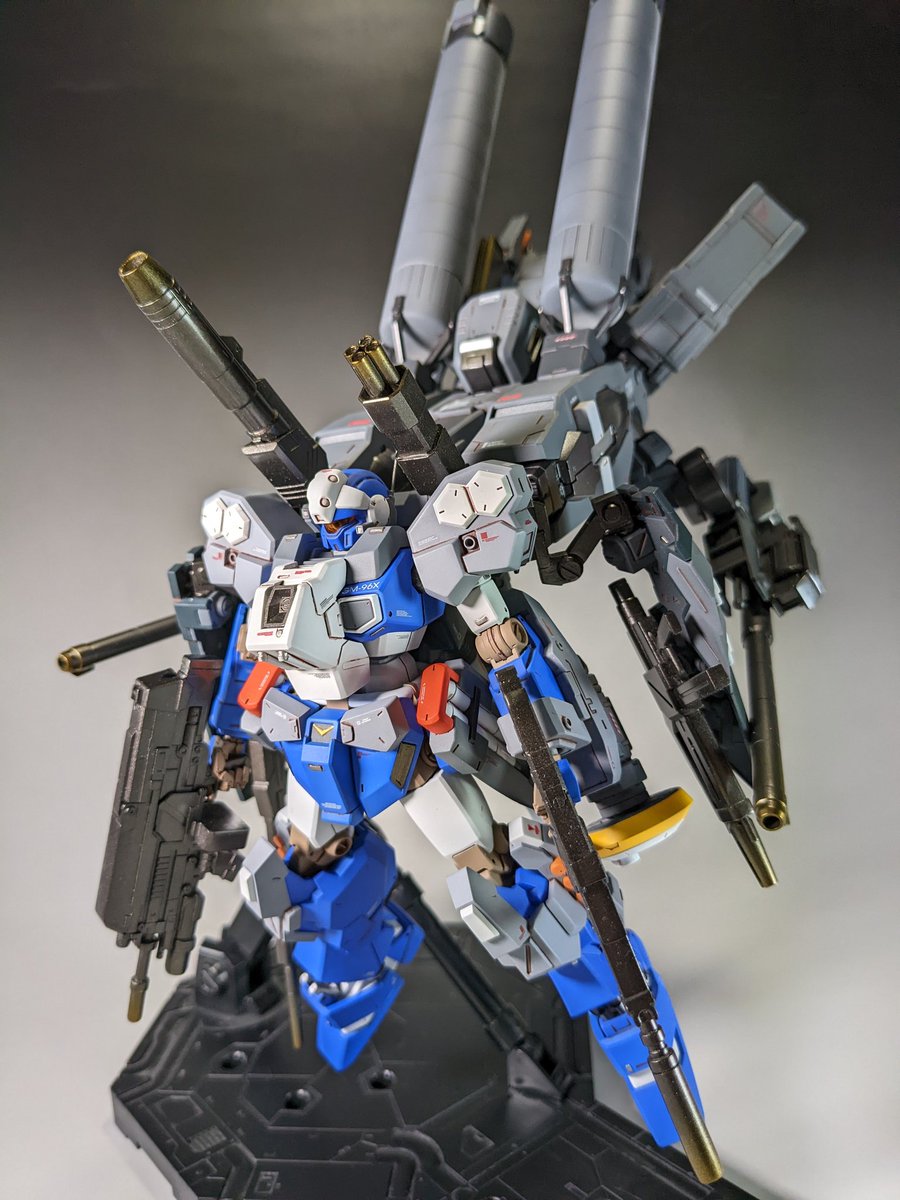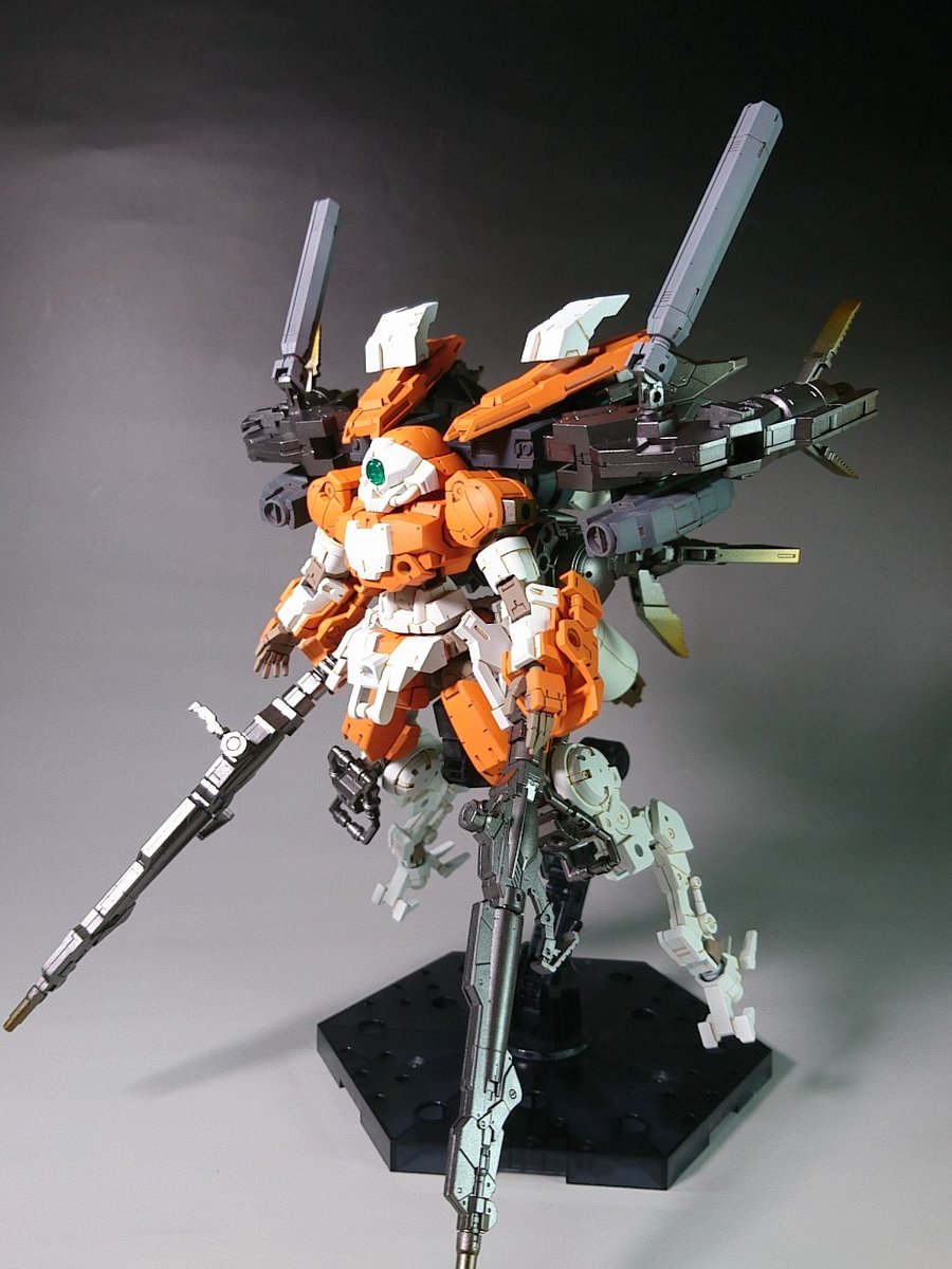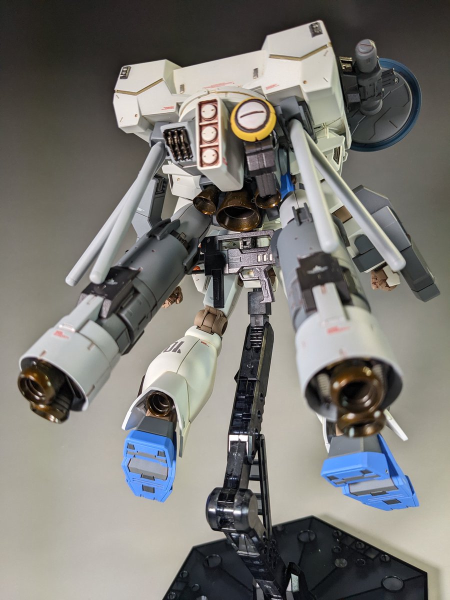 #今月作ったプラモ晒そうぜ マラサイ改(ゼクアイン兵装実験型)です。 前に作ったゼクアイン兵装の飾り台として作りました('・ω・') 肩部分はゼクから丸々流用なので兵装組み換えごっこで遊べます♪(・∀・)