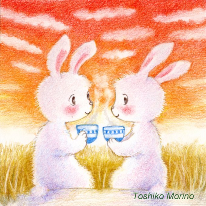 今日も一日おつかれさま☕🍵 #イラスト #色鉛筆 #うさぎ