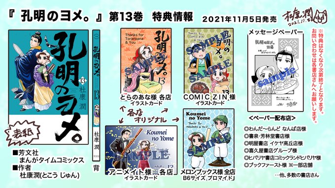 11/5発売☆『孔明のヨメ。』第13巻情報 【ブログ】単行本&特典情報 詳細 tokohkikaku.blog.shinobi.jp/Entry/66/#SngN… 【期間限定】単行本1~5巻分のお話&ヨメウラ三国志セレクション大公開! ニコニコ静画 ~11/11の23:50迄 nico.ms/mg601922 【お試し読み】 manga-time.com/comics/tameshi… どうぞよしなに♪