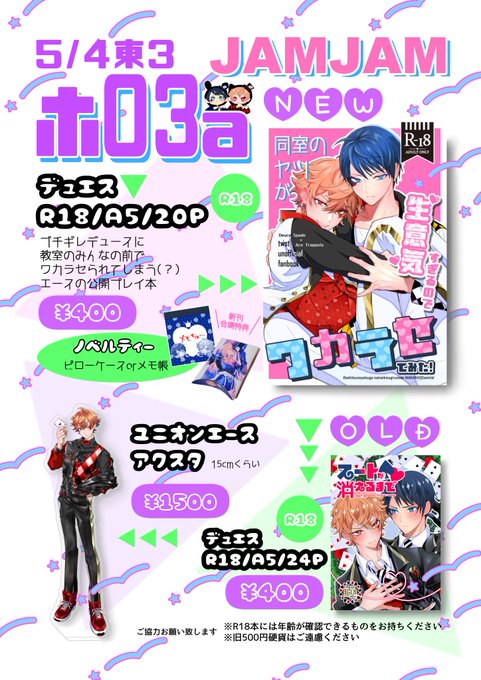 5/4スパコミ29デュエスぷち 目がチカチカするお品書きです twitter.com/tokorotenjam/s…