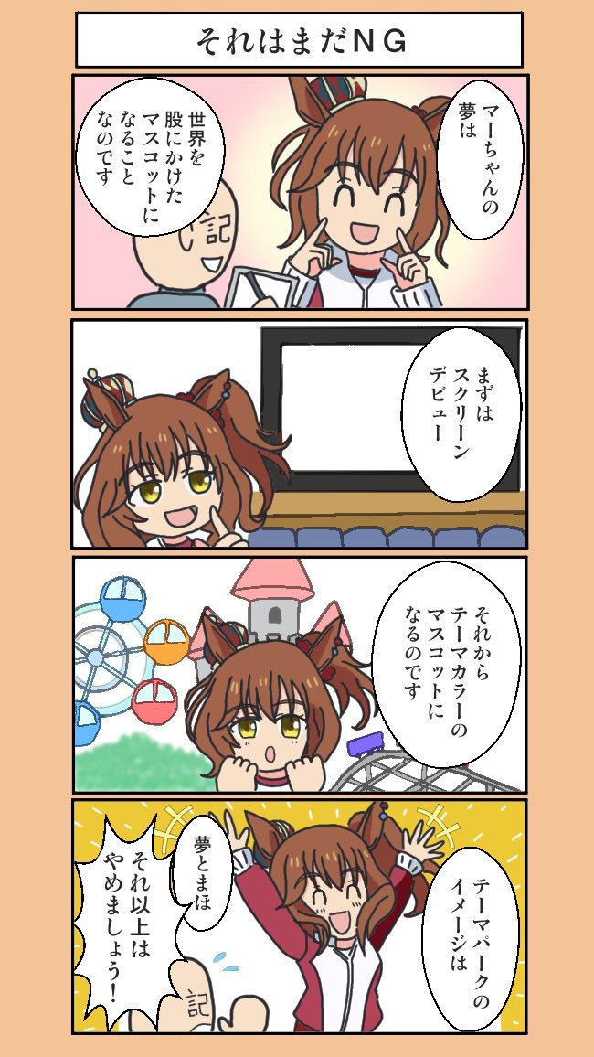 おはようございます☀️ マンガ完成しました👏 ちびキャラかなり苦戦💦 作品を作ると色々と課題が 出るけど がんば~るぞっ がんば~るぞっ🎶 #ウマ娘 #アストンマーチャン #4コマ #絵描きさんと繋がりたい #絵柄が好みって人にフォローされたい