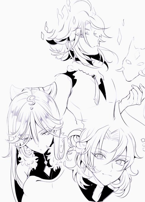 アルベド先生と凝光さんと魈くん 顔だけrkgk