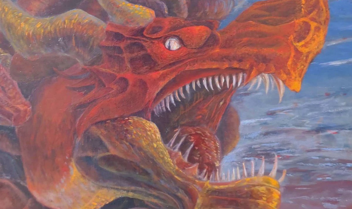 ドラゴンの絵描いてます~~。4枚目は100号(1.3m×1.6m)です。 ドラゴンや神話をフィルターにして自分や社会に思うところを描いています。 #絵描きさんと繋がりたい #夏の創作クラスタフォロー祭り #アート #art #イラスト #ilust #油絵 #oilpainting #クリーチャー