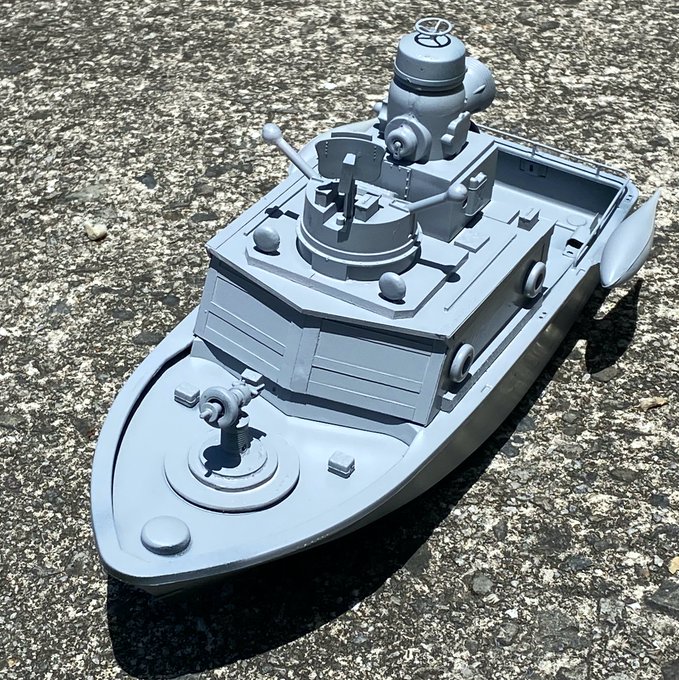 #タローマン大統領 で登場したCBGの新メカ、パッションシャークの製作中の写真です。カラーリングは昨年製作したパッションイーグル1号(2枚目奥)に通じるものにしています。 〜大統領で製作したミニチュアはこちらにまとめました→ note.com/tokuken2009/n/…