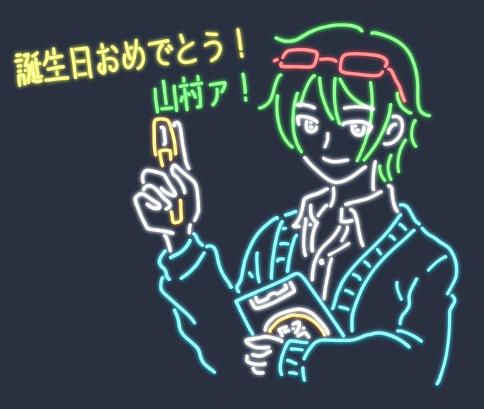 0 1 お隣の事務員さんの誕生日だそうなのでネオン描いてみました #山村賢生誕祭2023 #山村賢誕生祭2023 #山村賢 23/07/02 15:42
