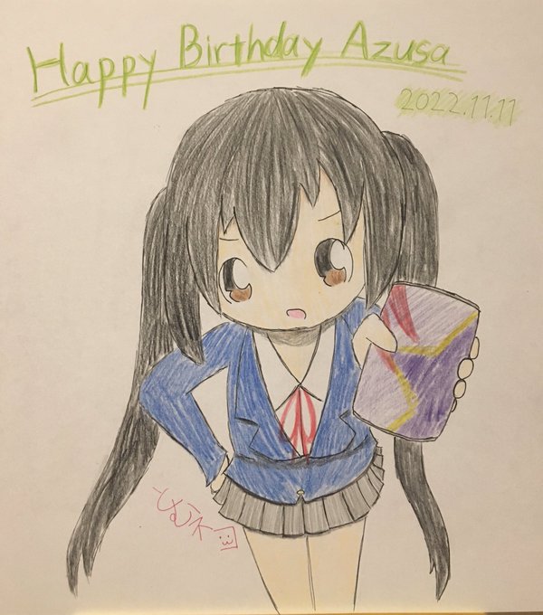 遅くなったけど、あずにゃんお誕生日おめでとう!٩(ˊᗜˋ*)و 本当はAM11:11かPM11:11に上げたかったけど、もうここで上げちゃいます☆〜(ゝ。∂) 前屈みのポーズ描くの難しかった…(›´-`‹ ) #中野梓生誕祭2022 #けいおん #K_ON