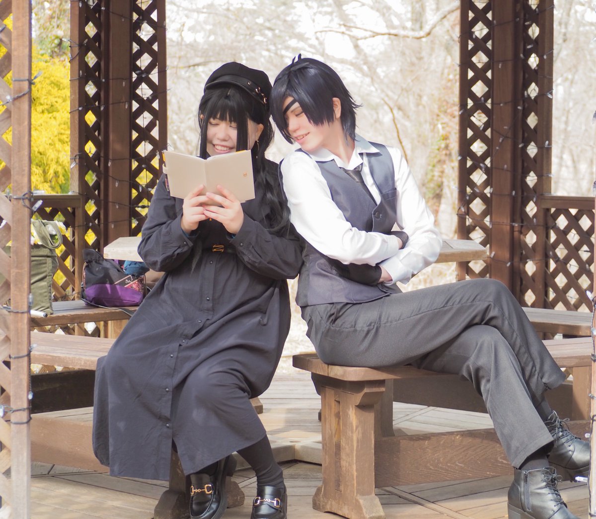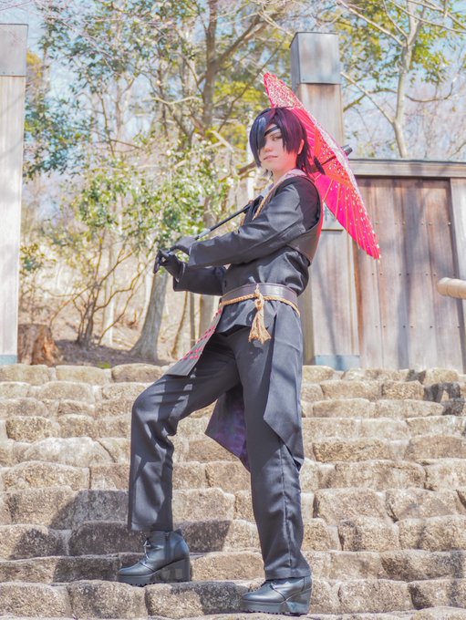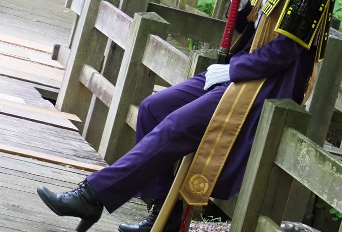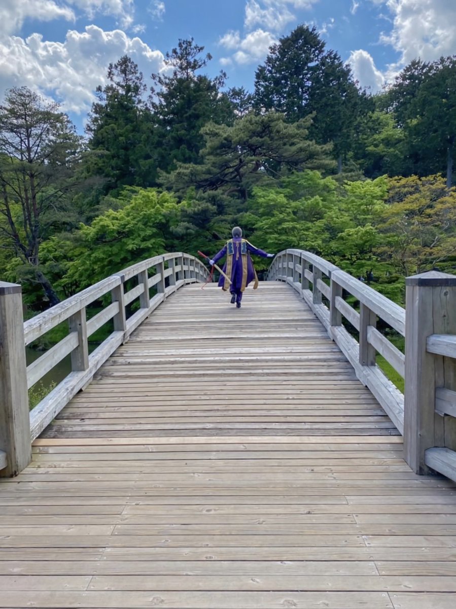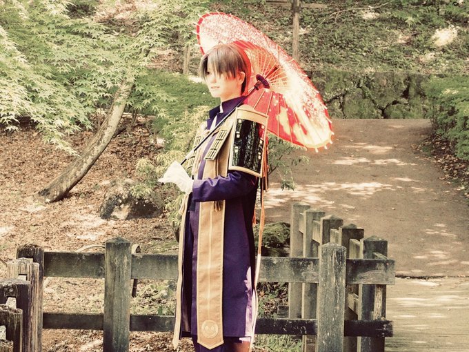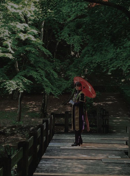 #レイヤーさんはコスプレの時のオフショットを晒して下さい ①橋で撮影したいが他の人がいてなかなか行けないはせべ ②傘は両手で持つ派のはせべ ③主の御髪を梳かして差し上げるはせべ ④遠くで何かやってるはせべ