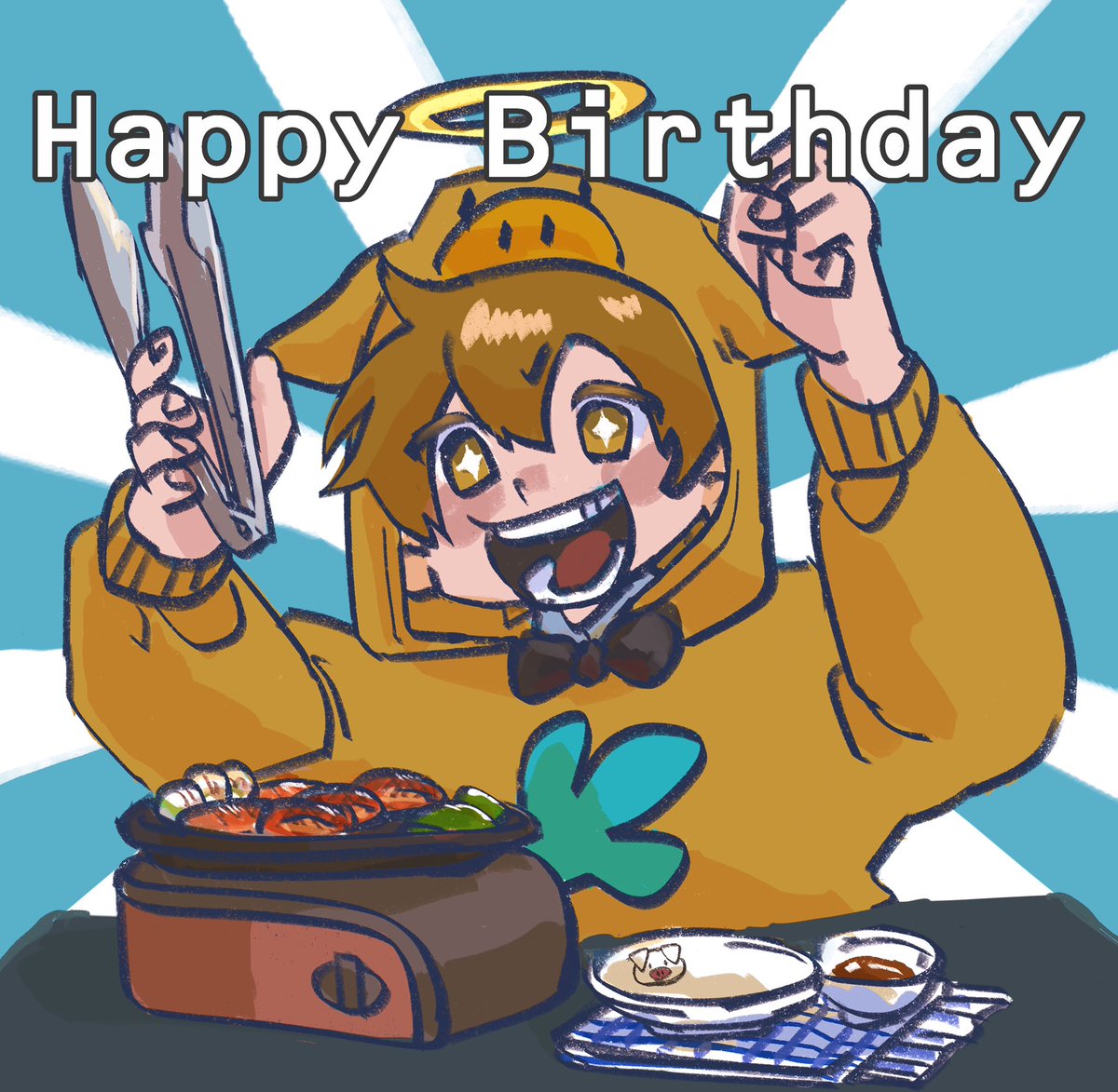 #イラスト貯金豚 お誕生日おめでとうございます🍖🍰 配信お疲れ様でした、楽しかった〜!!