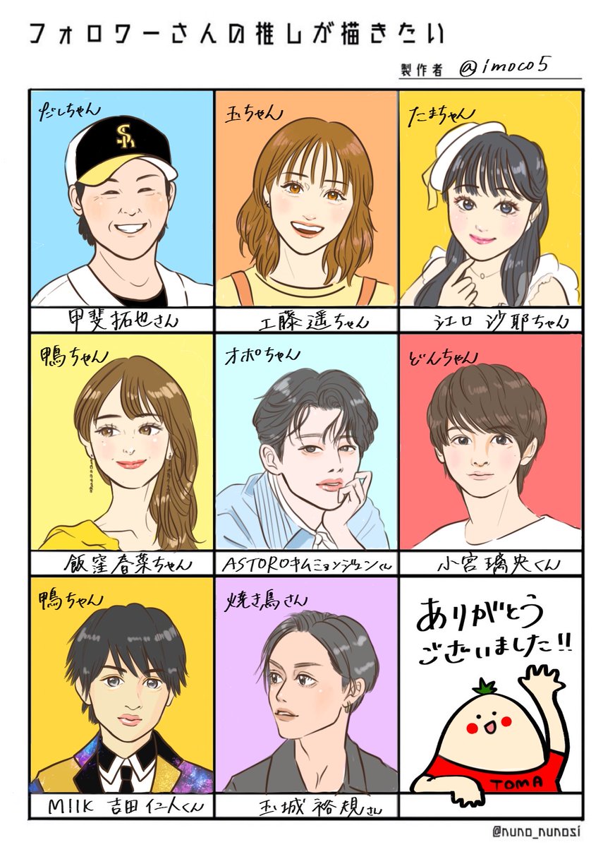 大変お待たせしました! いろんな人かけて楽しかったです! #フォロワーさんの推しが描きたい @dashinomoto5 @tmng_zikkyou @8jejeje5 @kmnb_45 @05@05_happy_opo @oudon_takuchan @nck0bt