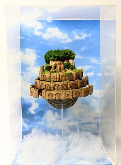 0 7 以前作った #ラピュタ の #ペーパークラフト の製作過程です。4コマじゃ足りないですね💦 壁を多めに削ってみたり、紙段層を出来るだけ見えずらくする等していたら、30時間くらい掛かってしまいました😂 #ジブリ #みにちゅあーと 21/05/04 08:05