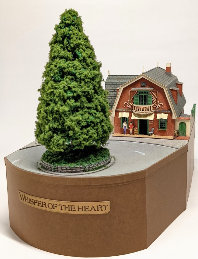 2 18 #ペーパークラフト #耳をすませば の 地球屋です。 手前の木と道路は自分で作ったので再現に苦労しました🤤 #ジブリ #みにちゅあーと 21/05/20 19:14