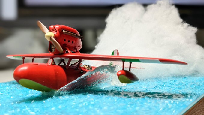 以前作った #紅の豚 の #ペーパークラフト です。 item.rakuten.co.jp/sankeishop/c/0… 海はジオラマ用の安い水面プラ板を使ってみました😁 壁なども色鉛筆で汚してあります。 ジーナさんは付属してません(笑) 自分で付けてみました。 #ジブリ #みにちゅあーと