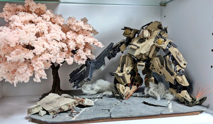 #今月作ったプラモ晒そうぜ 一つありました(笑) 桜の木と飾られる #ヘキサギアBAラウドゲイル くんです😆