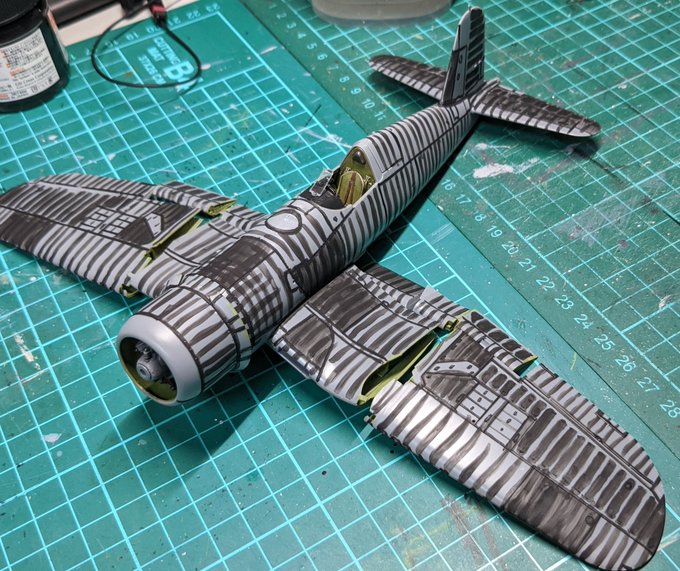 8 104 ゼブラパターンとやらを描いてみました(*´ω`*)ツカレタ 上手くいくか分かりませんがカッコよくなればいいなぁ🤣🤣 #F4U1Dコルセア 22/06/23 22:43