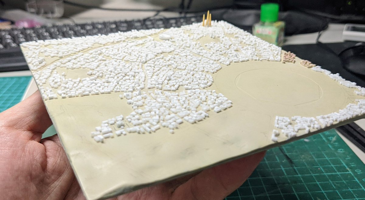 #個人的に今年1番頑張ったプラモデル見せてください これですね(≧∇≦)b プラモデルと言うよりプラで作った物ですが御勘弁を🤣 ダンまちの街"オラリオ"とバベルの塔
