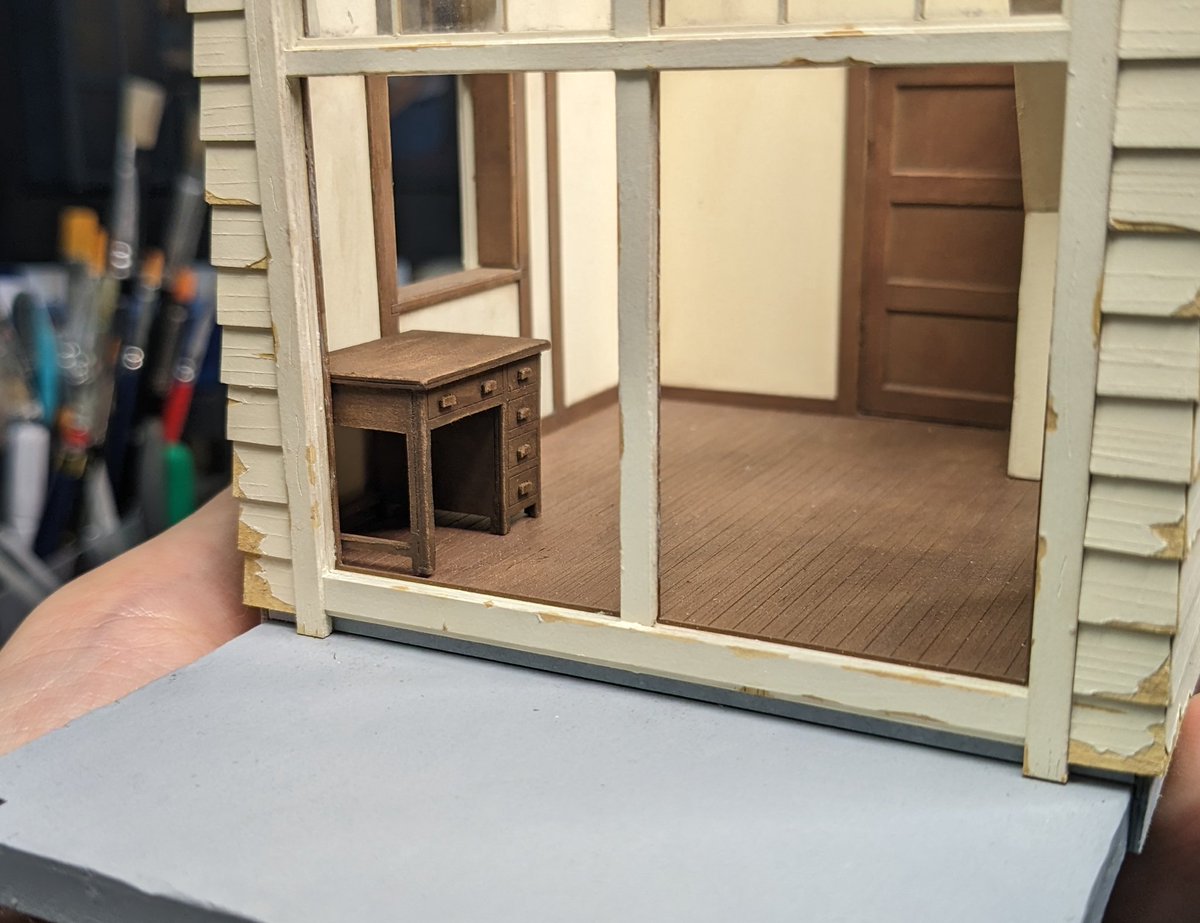 #Twitter模型祭 #ペーパークラフト #ジブリ さんけい から出てる #みにちゅあーと と言うキット 精巧なジブリの世界を再現できます 仲間が増えると嬉しいです🤤 写真は壁を汚してみたり、木を自作したりと工夫してあります。