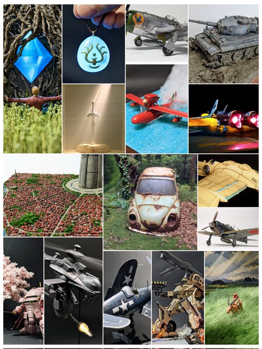 #今年作った模型晒そうぜ 7作品でした😁 もっと作るつもりでしたが、草を大量に植えるなど 自分から苦労をしに行くジオラマに手を出して時間がかかってしまいました😆