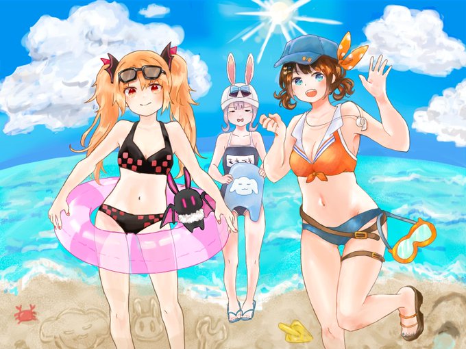73 273 ライヴラリ・サマー! みんなでバカンスしてほしい ゆに様は日を浴びれないのであくまで妄想です #ひまりアート #図月画工作 #ゆにぴく 22/07/18 22:05