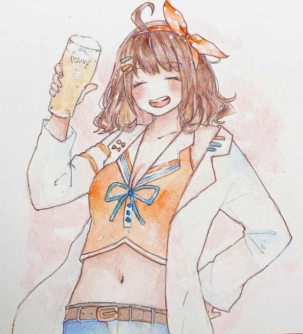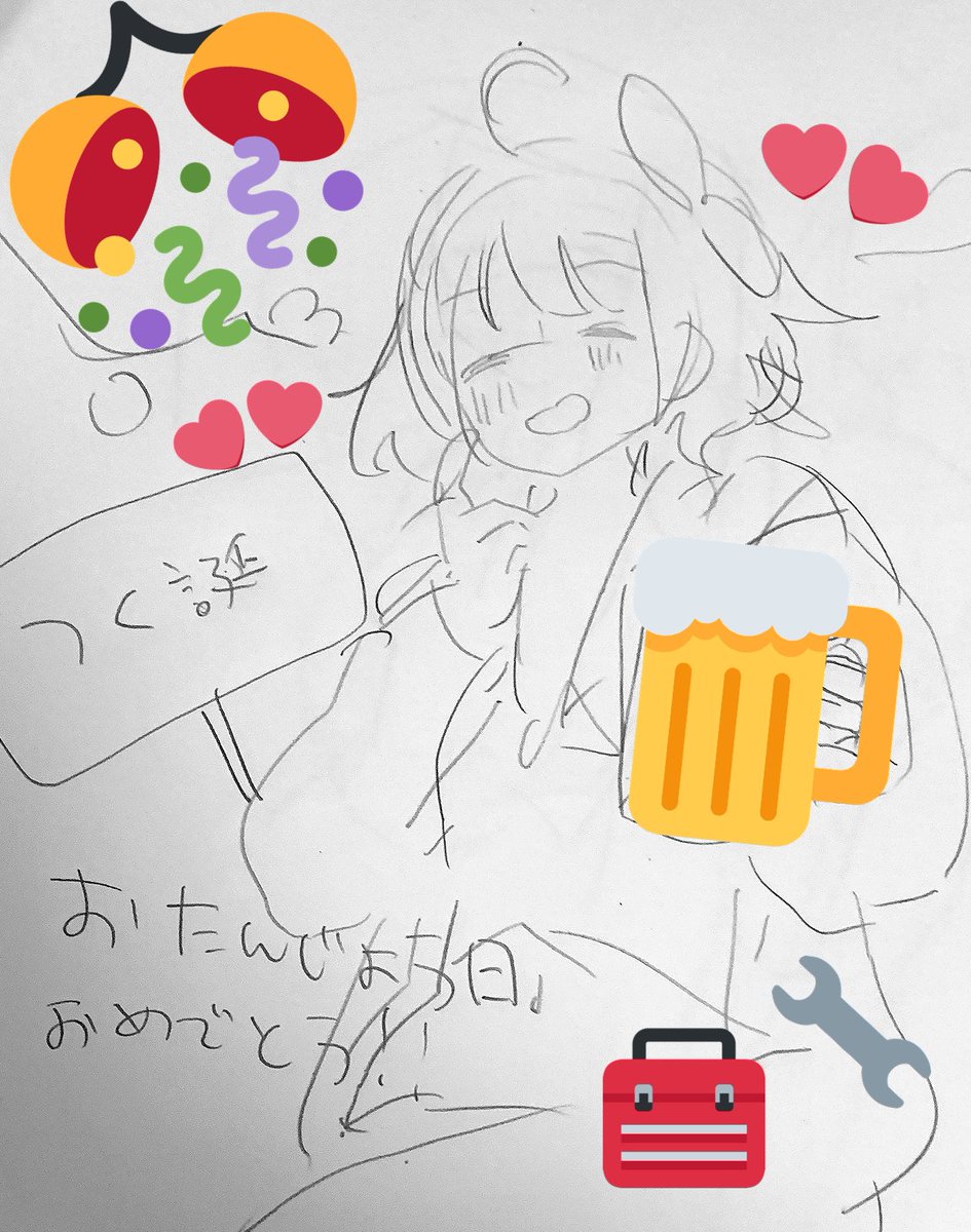 15 79 つくちゃんお誕生日おめでとう! これからも一緒にお酒飲んで配信楽しませてください! (ラフで本当にごめんなさい近いうちに完成させます…!! #図月画工作 22/09/29 14:58