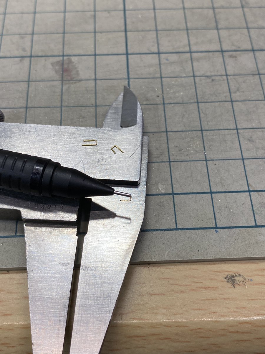 65 185 前にどこかで見かけた、シャーペン使って0.3mm真鍮線曲げて手すり作るやつ。 思い出してやってみたら、すんごい簡単で妻板のヤツもこれで作り直ししたくなる勢い。 20/04/01 16:08
