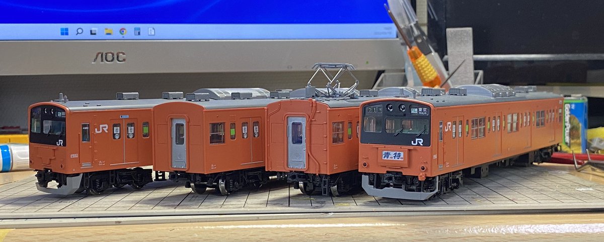 PLUMの201系4連八高線乗入れ編成高麗川行き、完成しました🙌🏻 GW頭に開始してGW中に完成させようと思ったけど、ライト点灯化してたら結構手間掛かってやっと完成です。