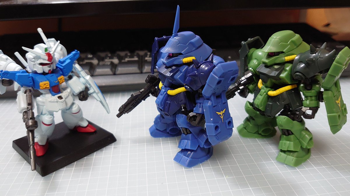 夜間強襲型ケンプファー 武装は手持ちにMMP80マシンガン、後でナイフとか持たせる予定! ケンプファーは武装モリモリのトコが好きだあたけど、なくてもプロポーションが良い!3枚目は黒背景!闇に溶ける〜_(:3」∠)_ #ガンプラ #今月作ったプラモ晒そうぜ #ケンプファー