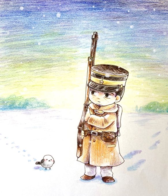 #金カムアナログイラスト部 お題「雪とキャラ」 開催おめでとうございます🎉 参加失礼します~! リプ欄にざっくり作業工程(っぽいもの)をまとめてみたので、ご興味がある方は宜しければ見てやってください🙏