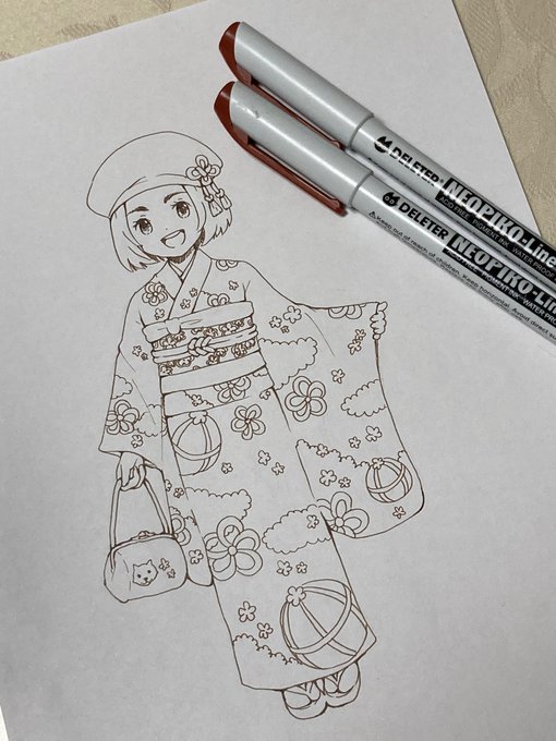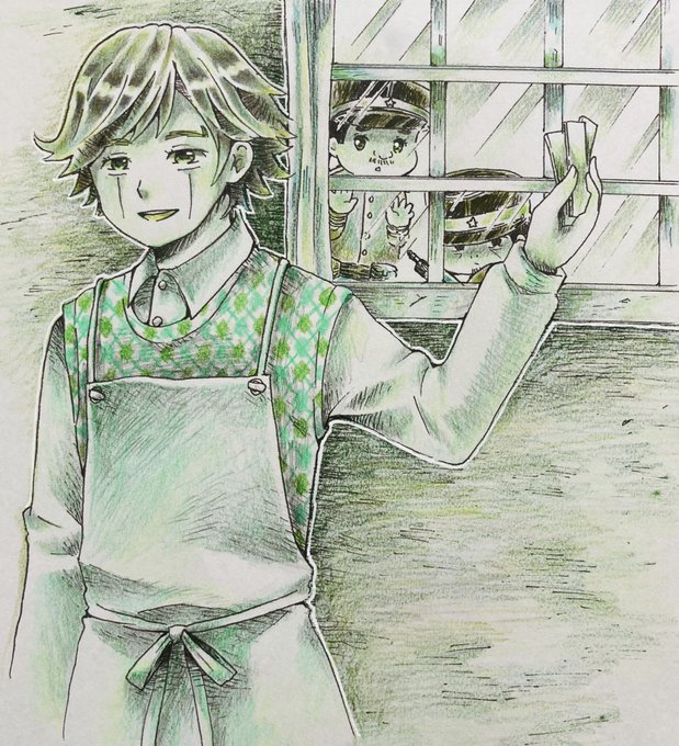 #金カムアナログイラスト部 先日ワンドロで描いたエノノカちゃんで失礼します! ワンドロの方は背景のみデジタルで付けてるんですが、こちらは加工無しです コピー用紙にペン入れしたものをコピーして(原紙は下書きの消し跡が凄いので)色鉛筆でガシガシ塗っています