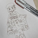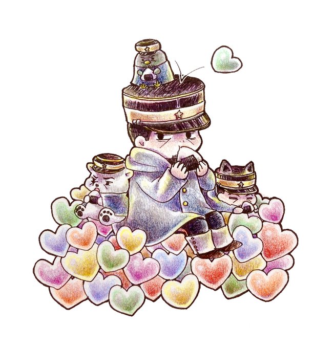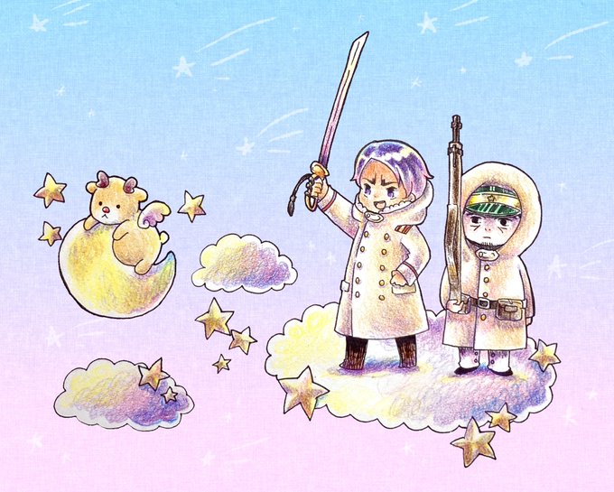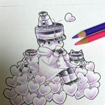 #金カムアナログイラスト部 珍しく途中経過を撮っていたので📸 影を紫〜ピンクで塗るのが好きです(🌙に合ってないけど気にしない) ♡の大群を塗るのに地味に時間かかりました… twitter.com/tomasuzoo/stat…