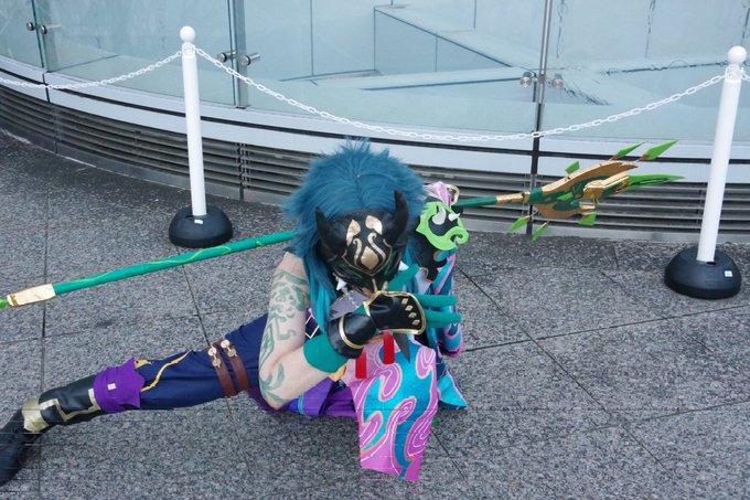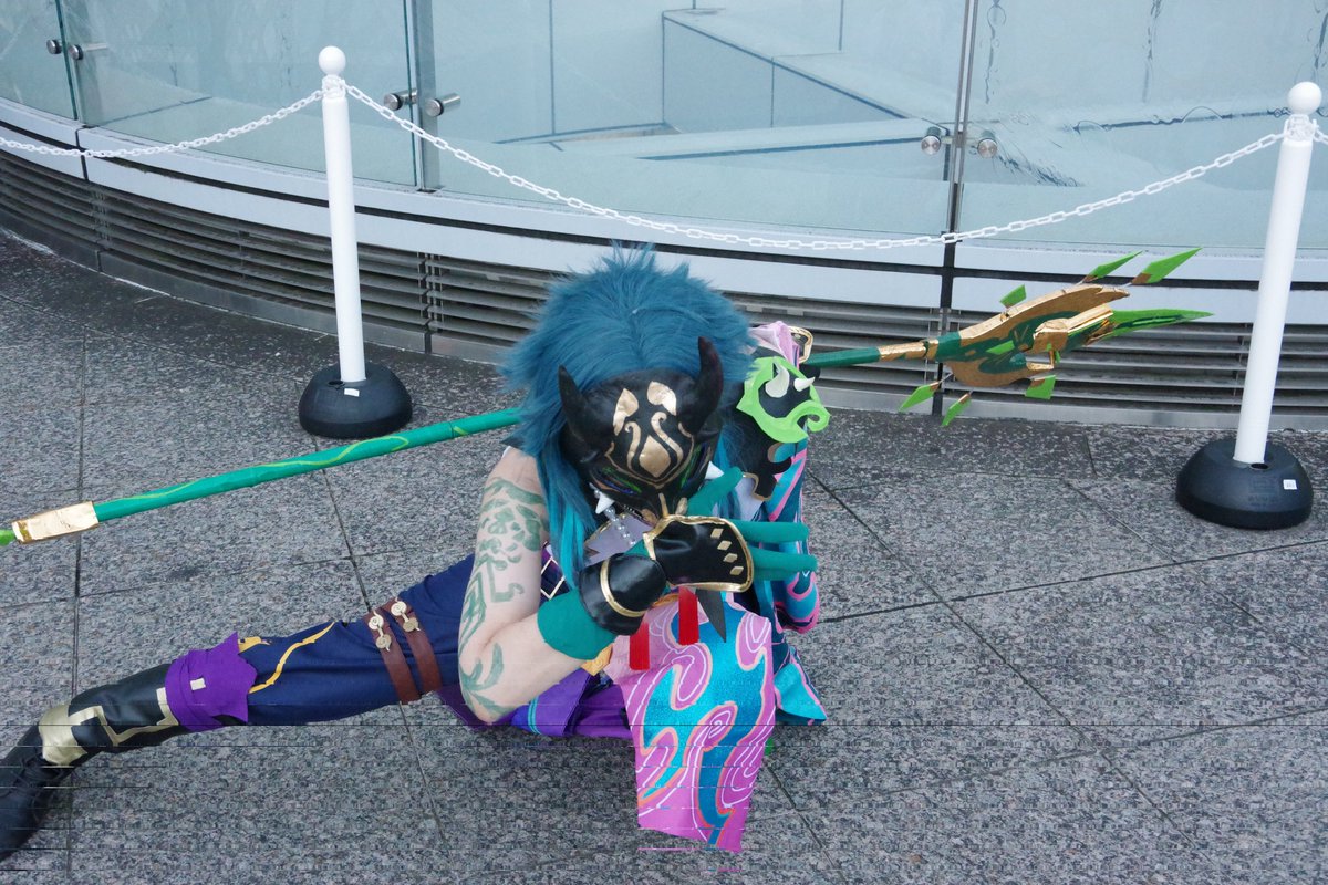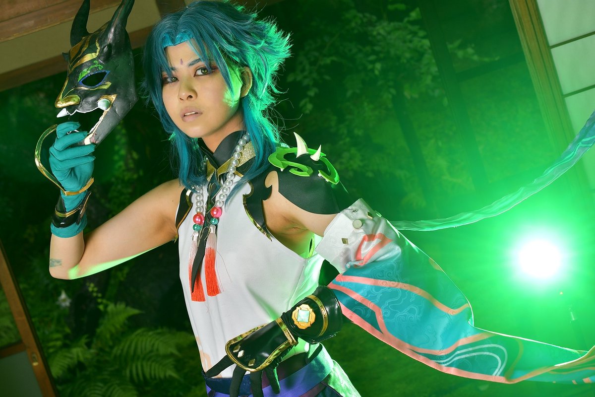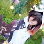 【作品名】 原神 【キャラ名】 公子 タルタリヤ 【一言】 お面も服も作りました。実際にお面の中央光ってます。角に吹き付けたシルバーが綺麗にキラキラしました。 #コスモスナップ03 #コスモスナップ #COSPLAYMODE