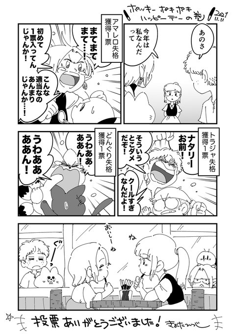 遅れましたがマンガを描きました。 今年もナタリー! 8票中5票の圧倒的強さでした👏🏻✨ 結局、ポッキーゲームじゃなくなっちゃったけど笑 投票してくれた皆様、ありがとうございます🥳 #ポッキーの日 twitter.com/tomato412/stat…