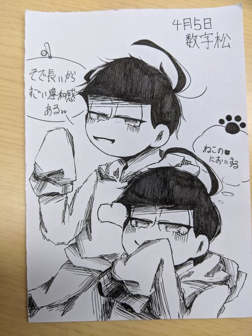 2 37 #4月5日は一十四の日 #4月5日は数字松の日 服交換した数字松 何故か十四松が服を着たら袖が伸びた ボールペンで一発描きじゃい! 何も思いつかんかったんや!! 21/04/05 21:21