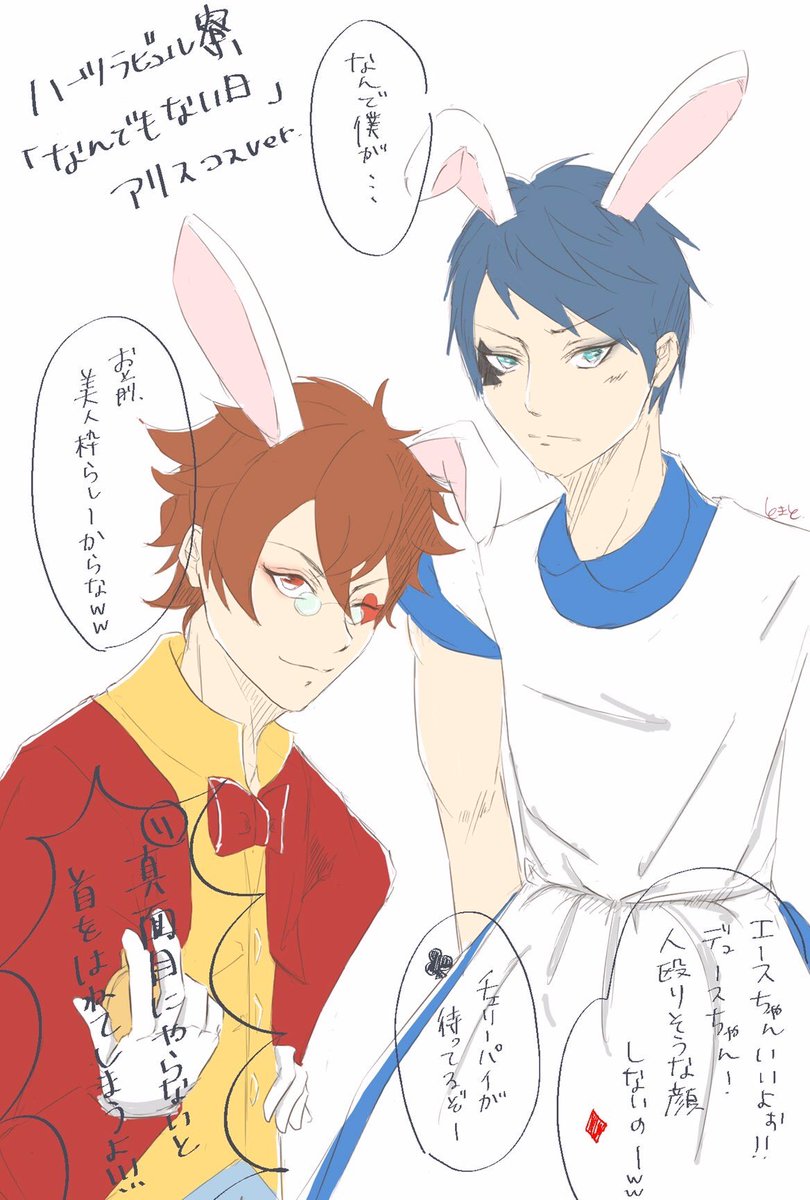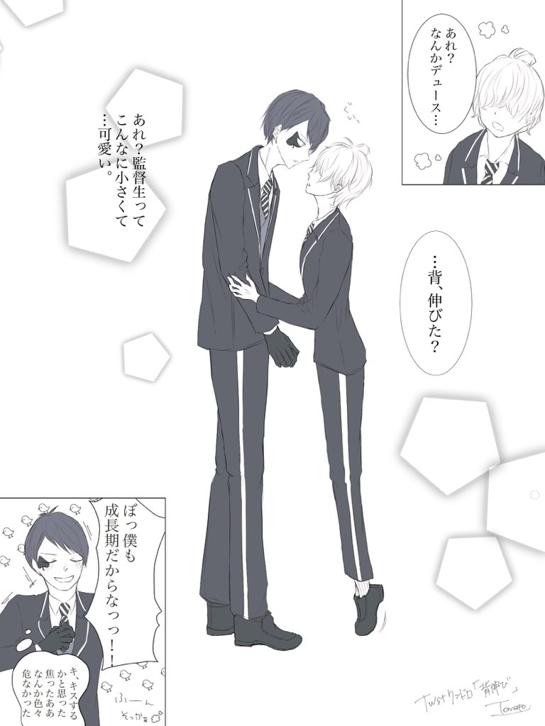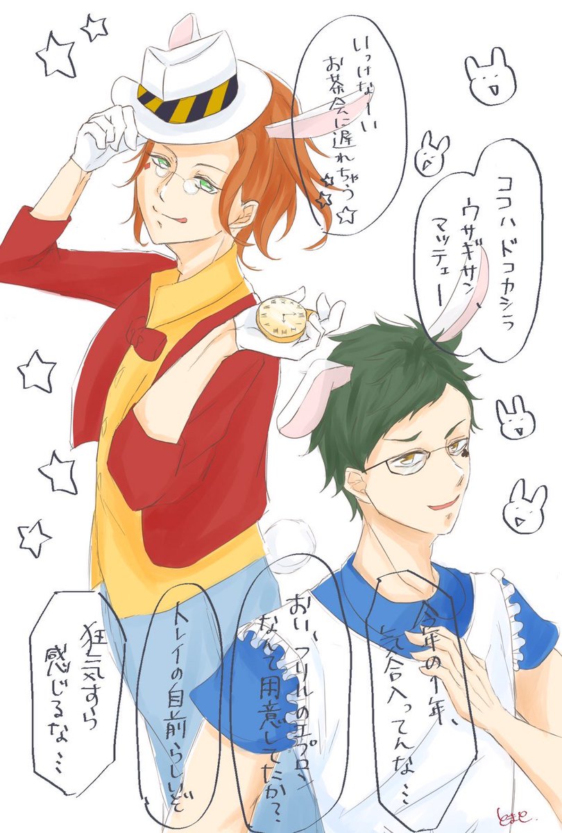 先輩方の何でもない日の思い出⊂( ˆoˆ )⊃ ♦️「けーくん達も1年生の時にコス選抜選ばれたんだよん」 ♣️「パーティの後、何故か当時の寮長に謝られたんだよなぁww」 #twst #ツイステファンアート