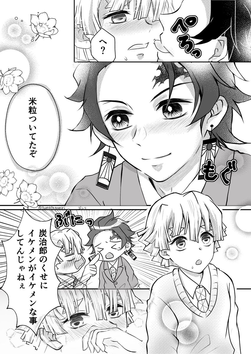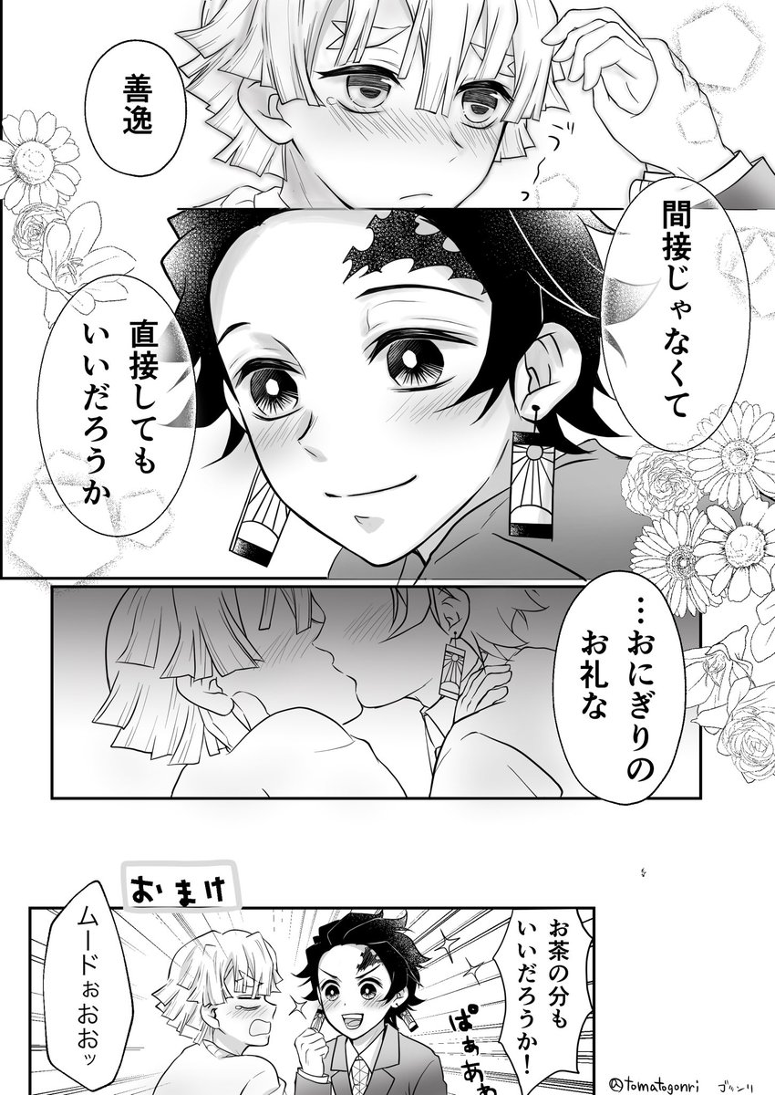 #おにぎりの日のたんぜん 大大大遅刻すみません😭🙏 まゆみちゃん、素敵企画ありがとう💕バタバタしてたけど、🍙企画だけは参加したかった😭❤️ただイチャイチャさせたかっただけのマンガ 炭善🎴⚡️💚💛🍙🍙