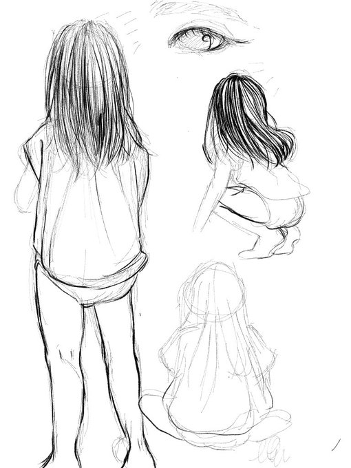 0 9 29日目 娘の後ろ姿とおめめの練習 #100日間100枚イラストチャレンジ 21/09/21 16:34