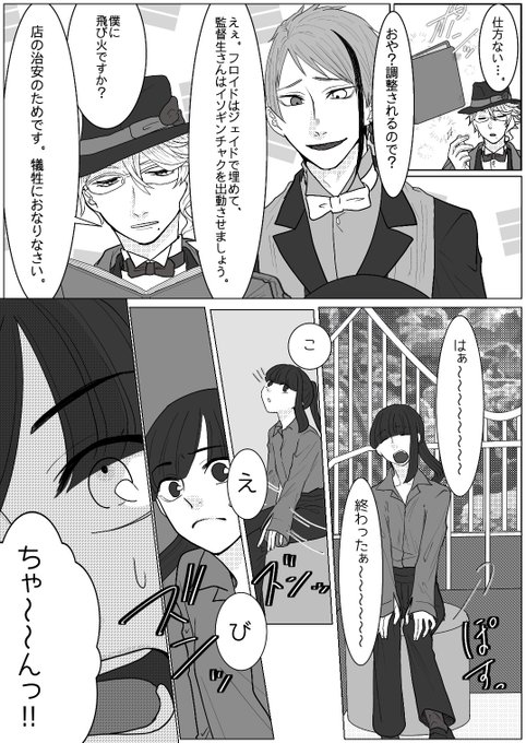 #ツイステプラス #twstプラス #フロ監 ちょっと続き描けるか分からないからあげて供養しとこ。 付き合うまでいくのも長かったのにデートもしてないという。付き合う気あるんか。ラフではいく手前まで出来てるんだけど仕上げるやる気がね。ほら。 あと作画コスト多すぎるよ。あと脳内で妄想して満足し