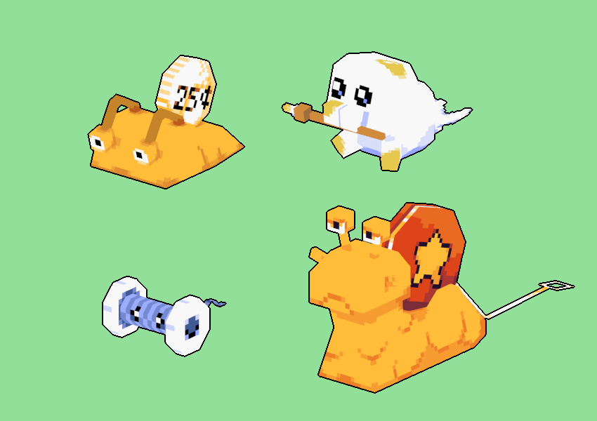 Hi #PortfolioDay!! I'm Tomasz and I make pixel art & animations, and more recently also some low-poly. Available for work on any pixel projects 🐌 (Animation reel in replies)