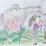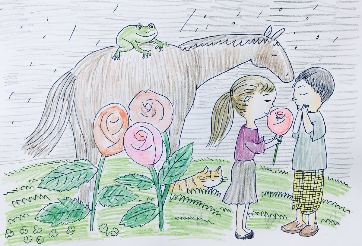 #ペン画 #色鉛筆イラスト #ポニーテール また雨が降りそうな空です。