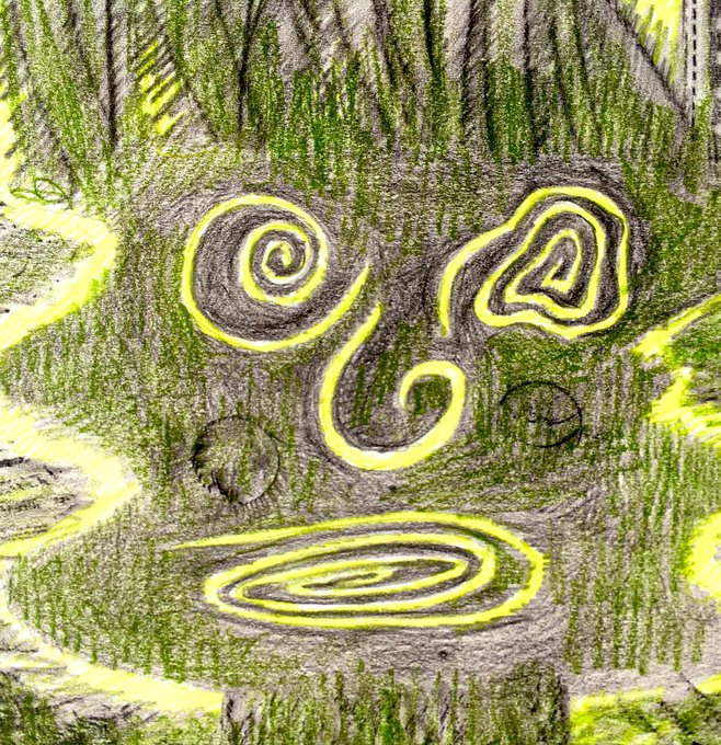 迷いながらもグルグルと時間が流れていきます。 #色鉛筆画 #抽象画 #絵本