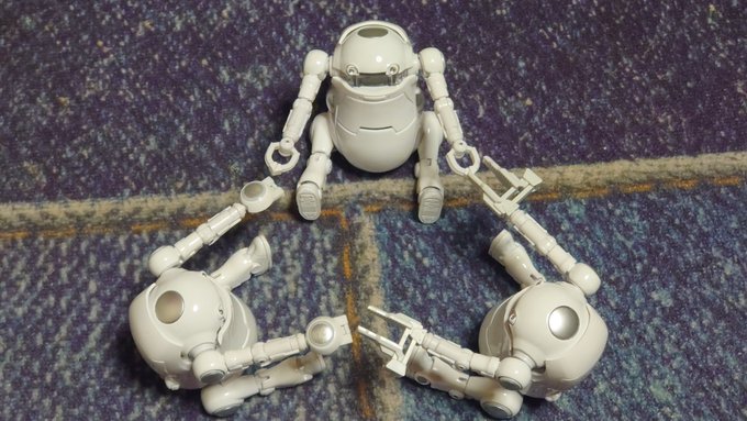 ハローウィーゴの蛇腹腕はY3を切り離してランナーについたままのY4に差し込んでから切り離してY5→Y6と繰り返していけば順番を間違えないし指先をプルプルさせて組まずにすむので楽チンです(*≧∀≦*) #メカトロウィーゴ